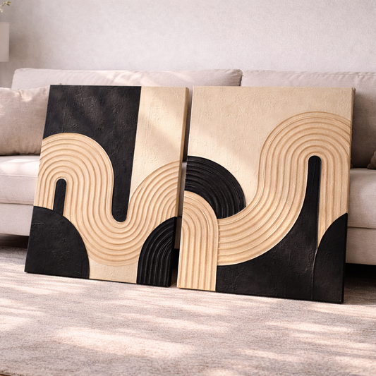 ERIS beige, black SET OF 2 | Textured Wall Art