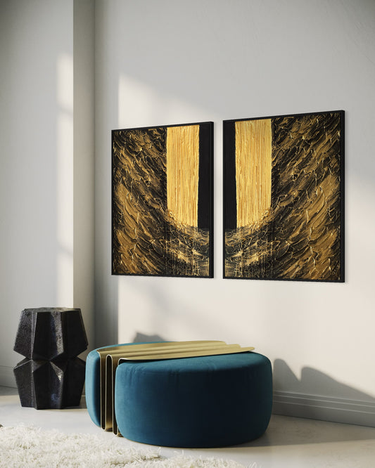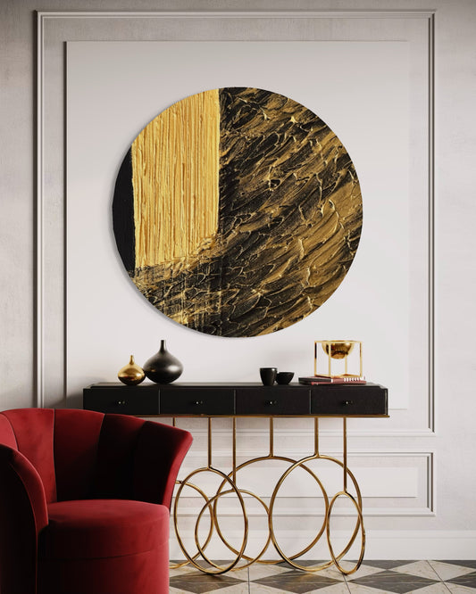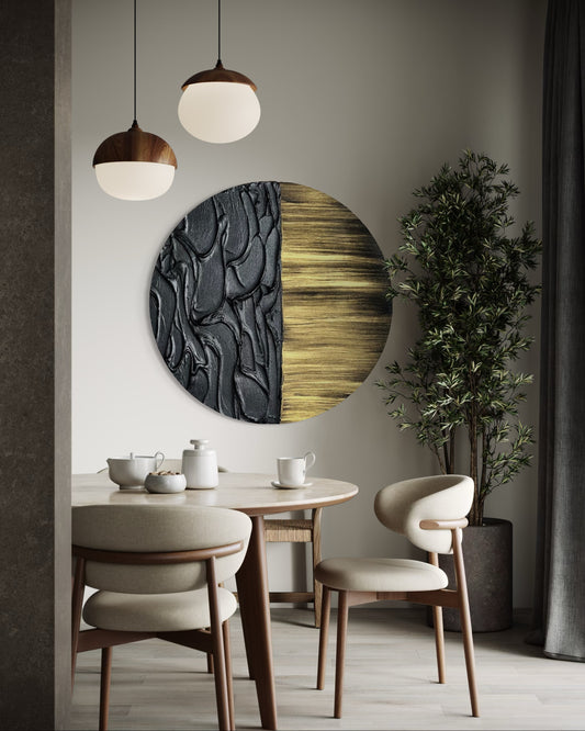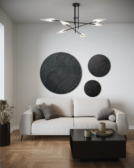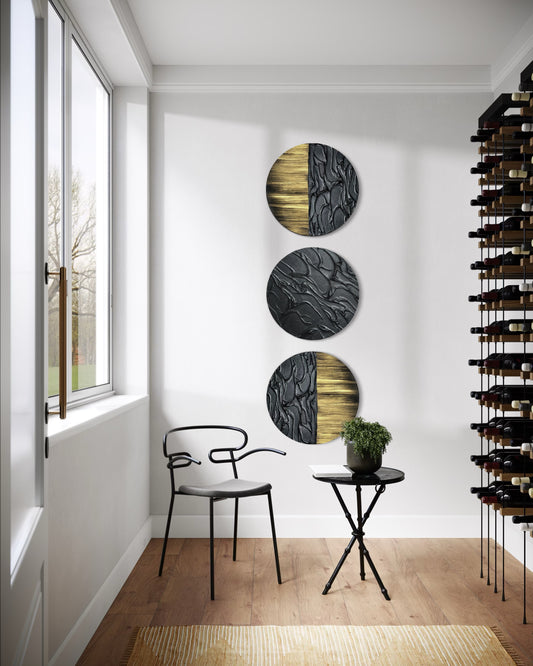 LAVA Black & Gold Set of 3 | Round Textured Wall Art