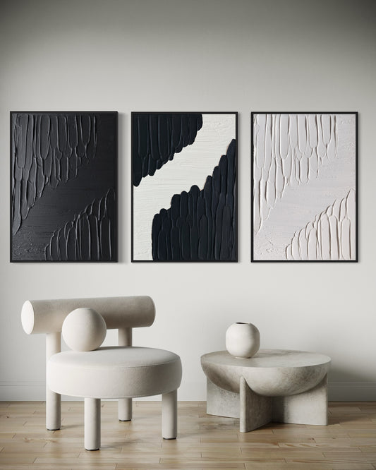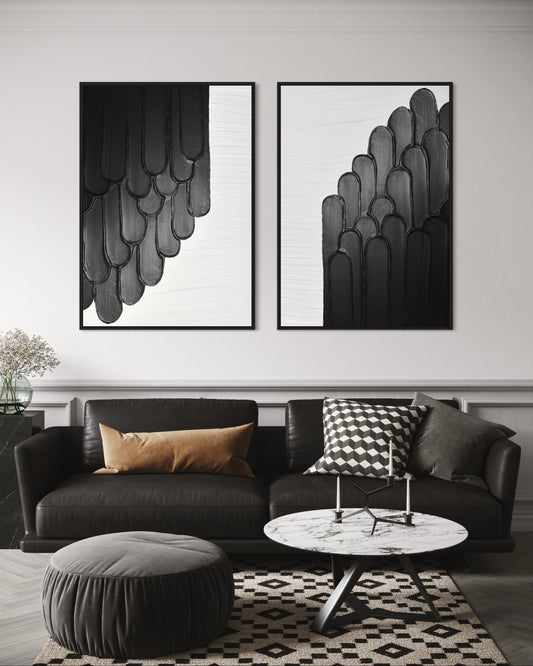 LAUMA black & white SET OF 2 | Textured Wall Art