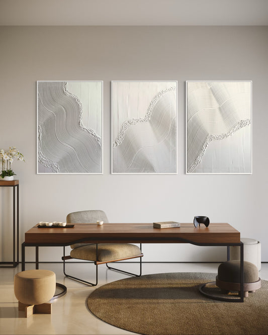 LOKI Set of 3 White | Textured Wall Art