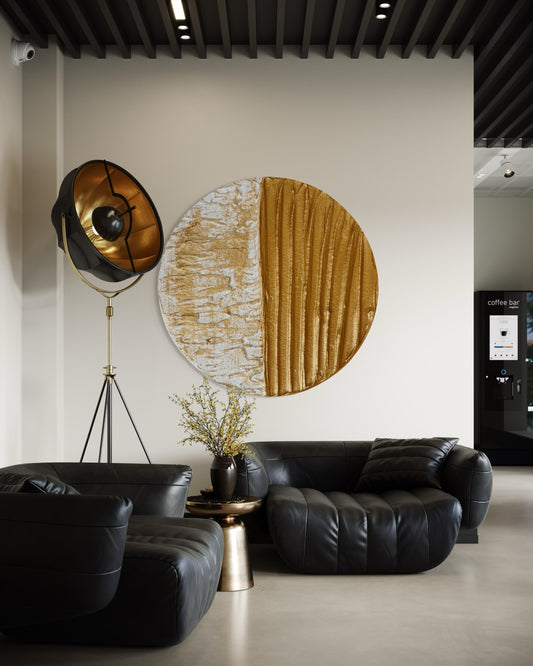 TRIO tryptyk Czarny-złoty Okrągły